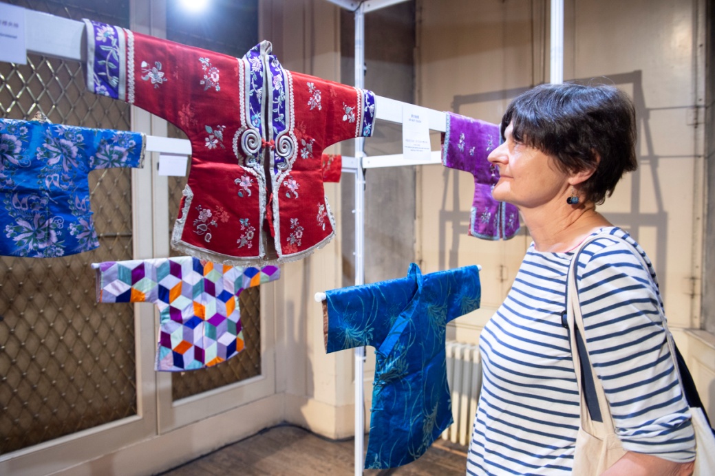 与秀演同期亮相的还有上海纺织服饰博物馆带来的“儿童与父母——百年中国家庭服饰风尚展”,呈现了百年中国家庭服饰风尚的历史与现状。展览分为历史和现代两大部分,历史部分主要展现晚清民国家庭的服饰风尚,以童装为主,再现从传统到中西交融的时尚流变。现代部分为中国著名设计师及艺术家陈闻先生设计的亲子装,和使用中国古典绘画中的青绿山水元素,将环保可持续新技术与传统文化、时尚艺术完美结合的无水印染科技旗袍系列,体现当代中国家庭的时尚衣着。