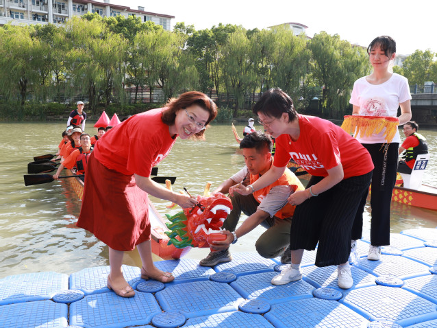崔运花在开幕式上对龙舟赛的举行表示热烈祝贺,对党委统战部的精心组织、体育部的大力支持,各民主党派统战团体的积极响应表示感谢。她表示,2019年是新中国成立70周年,同时也是中国共产党领导的多党合作和政治协商制度确立70周年,学校统一战线组织开展系列庆祝活动是为了更好的传承和发扬各民主党派和无党派人士同中国共产党同舟共济、团结奋斗光荣传统的创新举措,龙舟赛不仅有利于各民主党派和统战团体成员在速度与激情的对决中,增强团队默契,增进交流和互动,还能激发广大统一战线成员在工作中发扬团结合作的精神,不忘合作初心,上下同心,开拓奋进,以良好精神面貌庆祝新中国成立70周年。随后,崔运花与统战部、体育部和承办部门的负责人共同参与了龙舟“点睛”仪式。