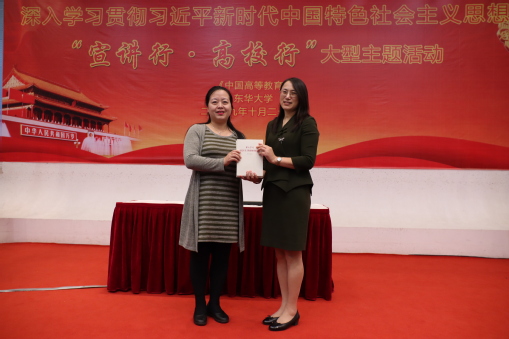 10月26日,中国教育报刊社“深入学习贯彻习近平新时代中国特色社会主义思想‘宣讲行·高校行’”大型主题活动在我校松江校区举行。党委副书记刘淑慧出席并主持活动,《经济日报》副总编辑季正聚研究员,《中国高等教育》党支部书记、总编辑唐景莉,党委宣传部、学生处、马克思主义学院等相关部门学院负责人参加活动。