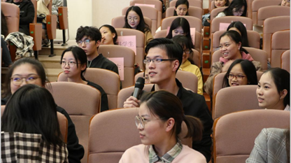 11月19日,为深入推进“不忘初心、牢记使命”主题教育,根据学院党委主题教育工作部署和实施方案,管理学院举行“不忘初心、牢记使命”主题教育系列活动之第七届“一站到底”党情国情知识竞赛。管理学院本科学生党支部与2019级硕士生党支部的36位参赛选手同场竞赛。北新泾街道社区党建服务中心副主任暨党支部书记谈敬月、北新泾街道社区党建服务中心李丹萍,管理学院党委副书记丁怡、关工委常务副主任刘玉等相关负责老师和学生党员代表参会活动。