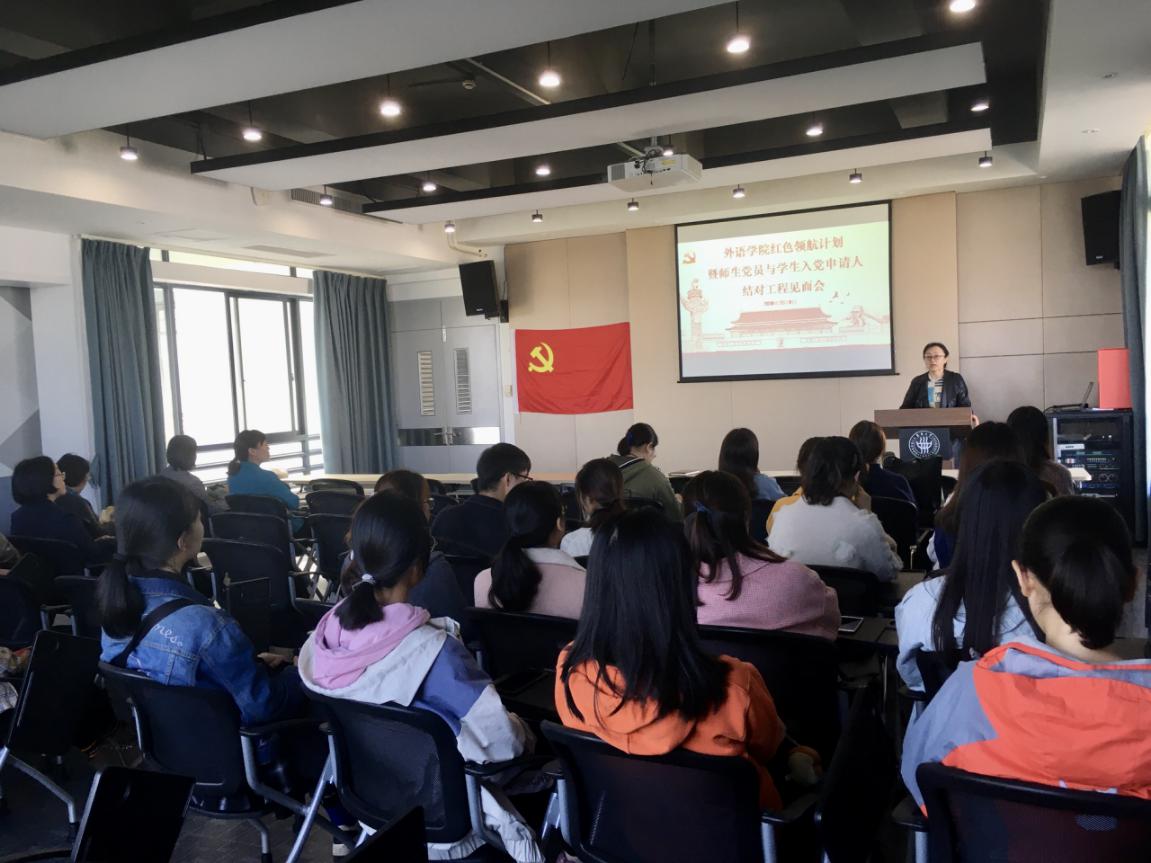为学习贯彻全国教育大会精神,扎实推进“不忘初心、牢记使命”主题教育,引导广大师生党员立足岗位,履职尽责,以实际行动践行教育的初心和使命,以朋辈关怀彰显党员的身份和坚守,外语学院党委结合学院工作实际,于11月9日实施开展“红色领航”计划暨师生党员与学生入党申请人结对工程。