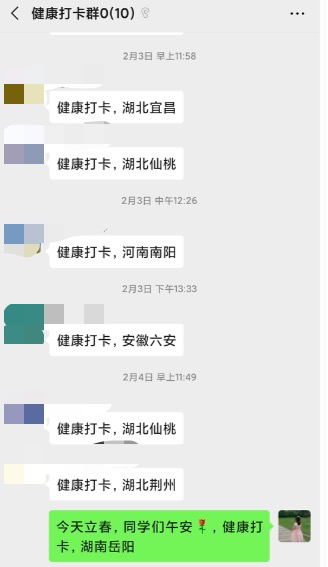 这个寒假隔离在家的纺织学院辅导员袁海源并不“孤单”,她每天与学生骨干进行线上会议,了解汇总学生健康信息,针对身在湖北的学生,采取“人盯人”战术,逐个沟通确认,每日线上打卡,她说这个假期很充实。
