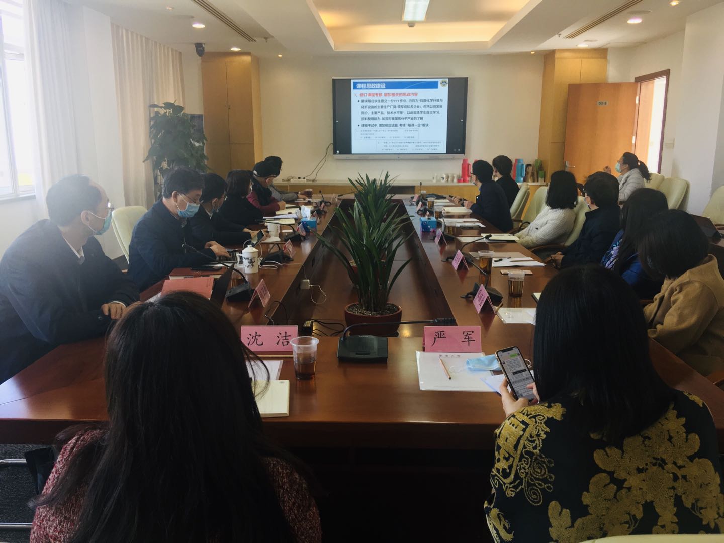 会上,教务处处长姚卫新介绍了学校近年来推进课程思政建设的做法和工作进展。马克思主义学院党总支书记、院长王治东,化工生物学院专业教师邢彦军,材料学院专业教师周哲,管理学院党委书记林文伟,纺织学院党委书记王新厚等先后就课程思政建设的实践探索和特色做法做了交流发言。党委宣传部、研究生部、学生处、学生就业服务中心、团委等相关部门围绕课程思政改革、教师思政工作、大学生思政教育等方面进行深入研讨和广泛交流。