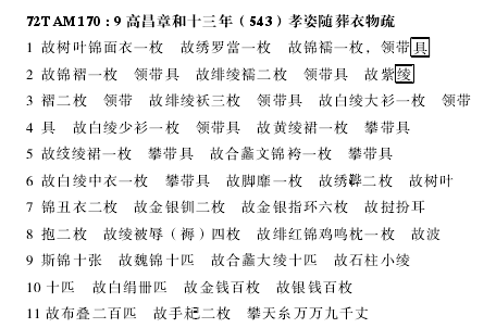 (书中《高昌章和十三年孝姿随葬衣物疏》整理)