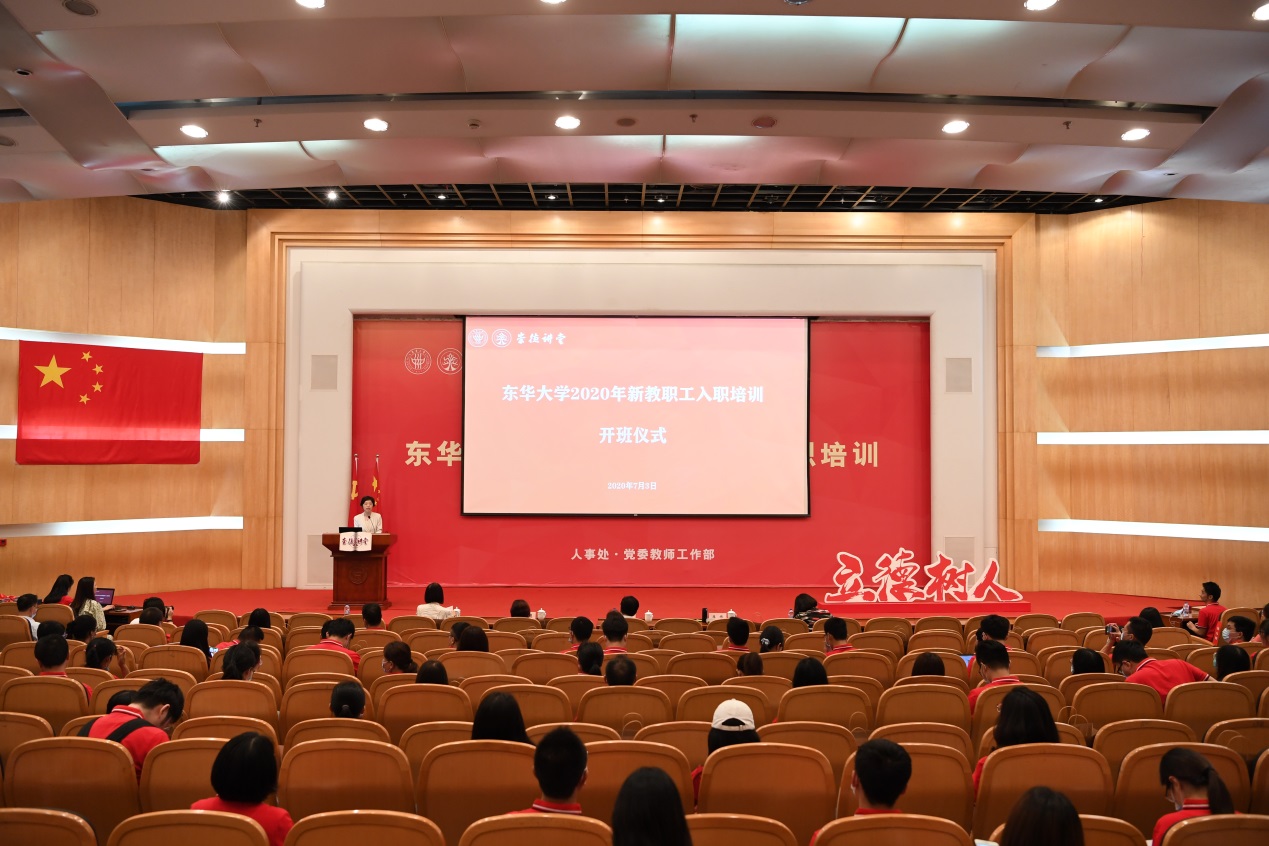 7月3日下午,2020年新教职工入职培训暨“崇德讲堂”师德师风专题培训在松江校区开班。校长、中国工程院院士俞建勇出席并作入职培训首场主题报告,党委副书记刘淑慧出席仪式,相关职能部门负责人参加。仪式由副校长李炜主持。