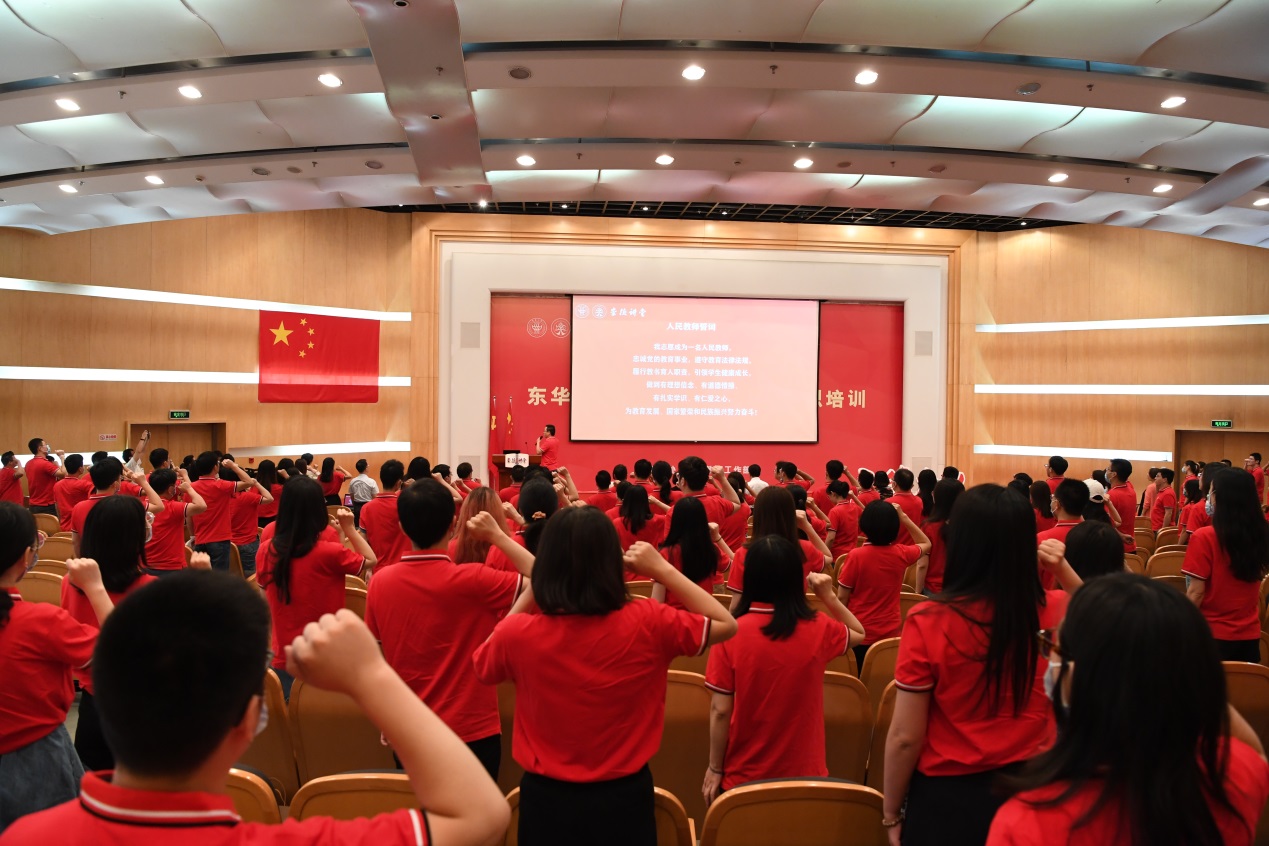 俞建勇就“如何做一个好老师”对新教职工提出了四点期望。希望新教职工坚守教育报国的初心,把教育工作视为终身追求的事业;牢记教书育人的使命,实现全员、全过程、全方位育人;尽快实现角色转变,把个人发展融入到学校改革发展的伟大事业中;心存敬畏,守住底线,养成良好师德。他勉励新教职工要以“功成不必在我”的精神境界和“功成必定有我”的历史担当,努力争做“有理想信念、有道德情操、有扎实学识、有仁爱之心”的“四有”好教师,担负起立德树人的光荣职责与使命,在东华的大舞台上实现人生价值。