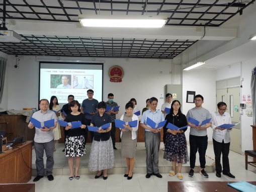 百年序章,久久初心。一首《没有共产党就没有新中国》自创作以来随即唱遍了小山村、唱遍了晋察冀边区、唱遍了全中国,这是人民的心声,也是历史的昭示。中国共产党从革命年代到和平现世,值此建党99周年之际,人文学院全体师生党员共同唱响“没有共产党就没有新中国”,通过这首情感炙烈的红歌表达对党的热爱,献礼中国共产党99岁华诞。会议最后,学院党委书记王英带领师生党员重温入党誓词,号召师生党员永葆政治本色、永葆革命和奋斗精神,在铮铮誓言之中,回想入党之初对党和人民的庄严承诺,牢记为人民服务的使命。