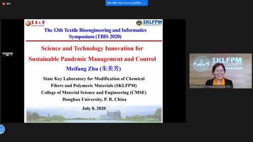 朱美芳在致辞中表示,纺织生物工程及信息国际会议(简称TBIS),是纺织、服装及生物医学工程应用领域的专业国际学术会议,会议由纺织生物工程及信息学会于2008年发起,至今已连续举办12届,是纺织、服装领域技术研究的国际盛会,每届会议主题都与全球热点话题密切相关。纤维材料改性国家重点实验室(简称SKLFPM)作为国内纤维和纺织材料领域第一个国家重点实验室,为我国发展成为化学纤维生产大国并向纤维强国迈进作出了重要贡献。为迅速应对新冠肺炎疫情,实验室今年2月启动了针对COVID-19个人防护设备的应急项目(PPE-COVID-19)。该项目在疫情预防和控制方面取得了显著的实际效果,不仅为一线研究提供了科技支撑,同时还向一线医务人员捐赠了口罩和防护服以抵御新型冠状病毒,希望各方力量能够积极加入抗疫工作,造福全人类。同时,她还呼吁成立国际数字健康与智能纤维科技创新组织(IDH-IF-STIO),集国际力量以推动跨学科、跨行业、跨国家、跨区域的产学研联合创新,构建数学、健康、智能材料国际产业生态链协同平台。