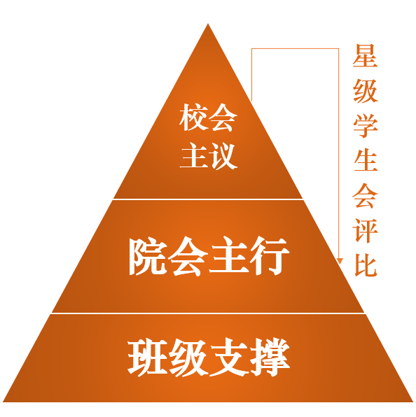 学生会大幅度进行工作部门及学生会工作成员数目的精简,形成“主席团+工作部门”的工作模式为骨骼。开设《学生会理论与实践》选修课,由学生会秘书长封华担任主讲人,以该课程为主要平台,系统培养业务熟练、能力可靠的学生会后备力量,学员自愿选择项目工作组进而转化为学生会的中坚骨干。