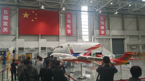 在上飞院相关负责人的陪同下,大家来到总装试验室,通过中国商飞“一个总部、六大中心”的整体布局沙盘了解了商飞公司概况。随后,参观了商飞的企业文化长廊、航电试验室及ARJ21、C919、C929多款飞机模型,还登上了C919大型客机展示样机了解机舱布局。随后,大家共同观看了2014年5月23日习近平总书记视察中国商飞以及首架国产C919总装下线时的影像资料,深切感受到了总书记对大飞机研制队伍寄予的厚望以及新老航空人“航空强国、四个长期、永不放弃”的大飞机创业精神。