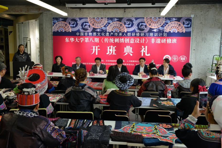 服装与艺术设计学院院长李俊对非遗研修班开学表示祝贺。我校自2016年开展非遗研培至今已有四年多时间,非遗研培工作在此间稳步推进,逐步行成了以学校之“长”做研培、“利”上海之地拓眼界、发挥学科优势狠钻“研”和回访巩固研培“情”的东华研培特色。