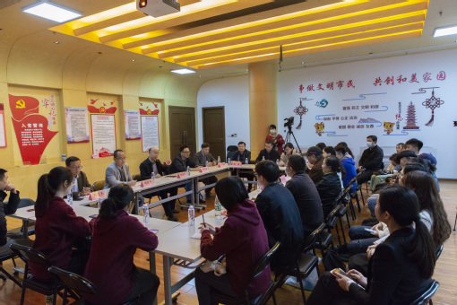 随后,松江区委宣传部工作人员、松江大学城的师生代表、广富林街道党委工作人员、上林社区代表、市民巡访团代表一起参加了“松江三人行”理论宣讲走基层社会实践活动座谈会。在座谈会上市民们就“青年故事”发表自己的感想,了解了松江历史,感受了高校文化,更学习了中国理论思想,也感受到青年学生的朝气蓬勃。会上就进一步提升高校理论宣讲的品牌效应、更深层次地深入基层等问题展开交流。