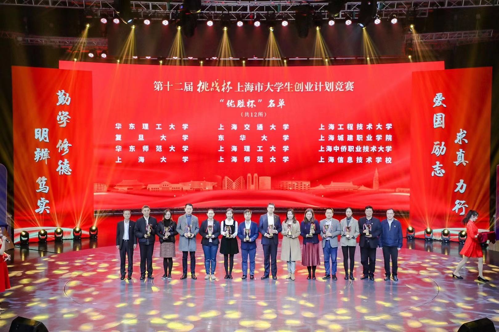 (我校获得第十二届“挑战杯”上海市大学生创业计划竞赛“优胜杯”)