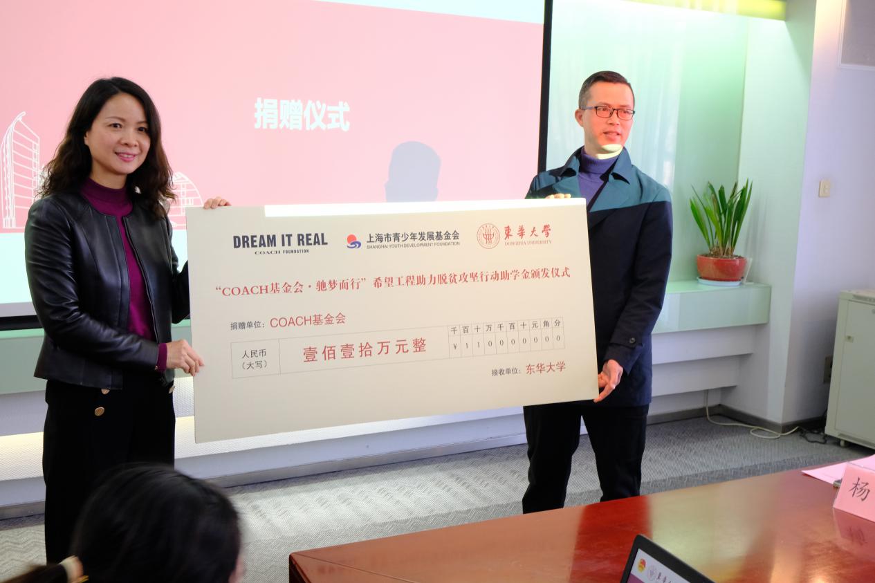 据悉,“COACH基金会·驰梦而行”希望工程助力脱贫攻坚行动助学金是我校第一次通过团委对贫困学生进行资助,希望能以此为起点,与社会各界建立更密切的联系,拓展校外助学资源,对家庭经济困难学生身心发展、道德品质培养、学业帮扶、就业指导等方面给予更多关怀和帮助。