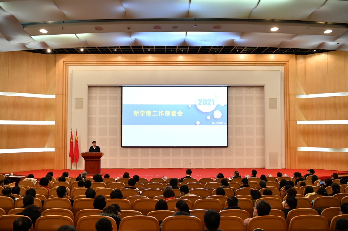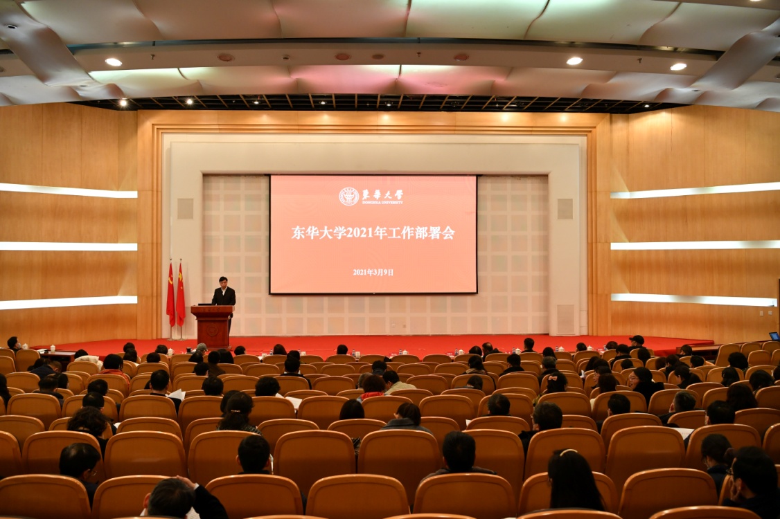 3月9日下午,学校2021年工作部署会在松江校区召开。会议强调,要以习近平新时代中国特色社会主义思想为指导,深入贯彻落实党的十九大和十九届二中、三中、四中、五中全会精神,深入学习贯彻习近平总书记关于教育的重要论述和考察上海重要讲话精神,深入开展党史学习教育,坚持党的全面领导,全面落实立德树人根本任务,不断推进依法治校,立足新发展阶段,贯彻新发展理念,全面启动实施“十四五”规划,加快构建以学科为统领的高质量发展新格局,以“奋进东华”建设新实效迎接建党100周年、建校70周年和学校第十一次党代会的胜利召开。