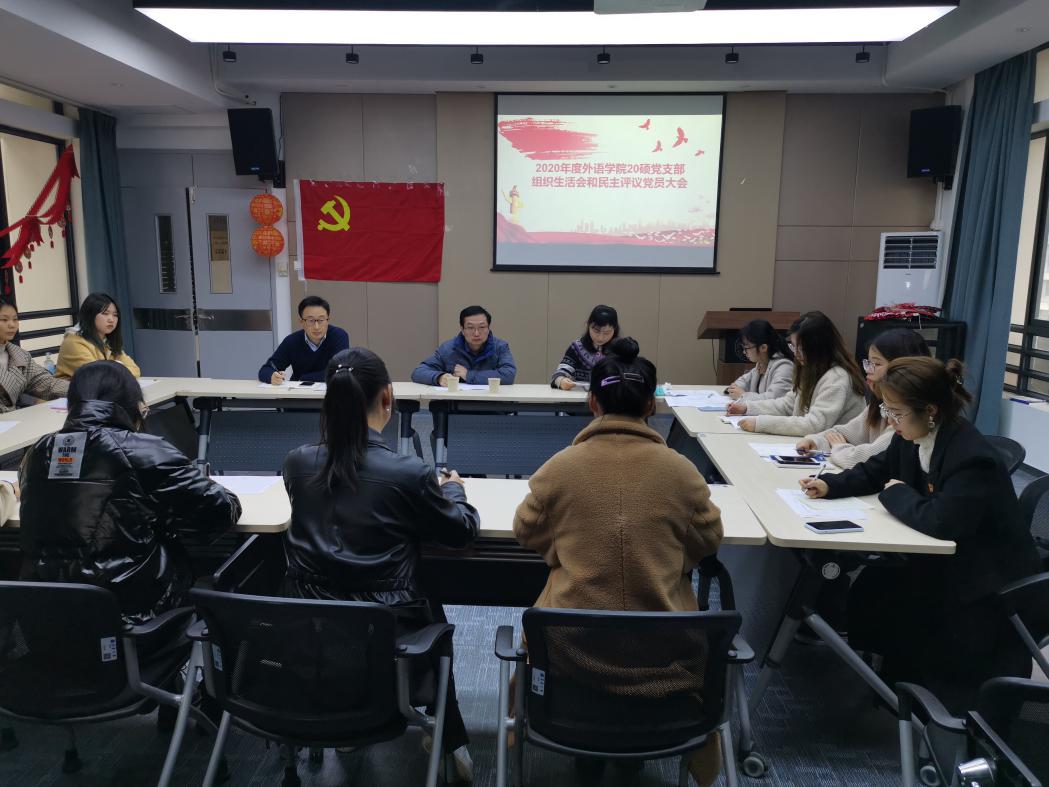 近日,2020年度外语学院20硕党支部组织生活会和民主评议党员大会召开,副校长邱高作为联系该支部的校领导参会。学院党委书记李佳耀、副书记邓姗姗、20硕党支部全体党员参加会议。支部书记陈家璐主持会议。