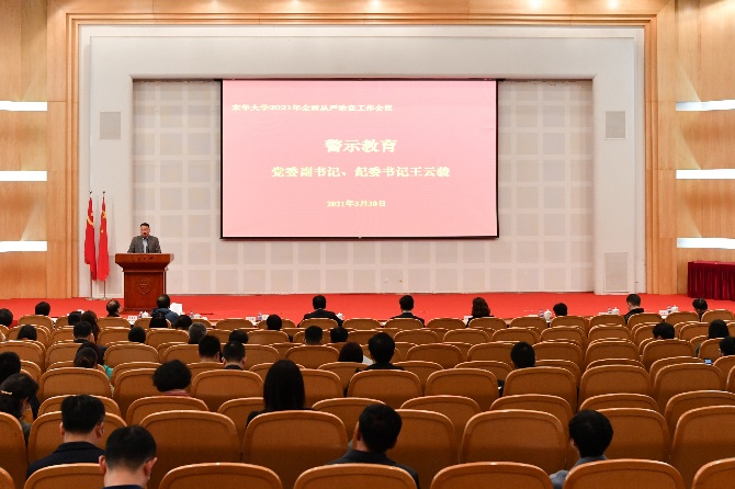 3月30日,学校召开2021年全面从严治党工作会议,总结部署学校全面从严治党工作,并结合相关典型案例开展警示教育。党委书记刘承功出席会议并讲话,校长、党委副书记俞建勇主持会议,在校党政领导班子成员出席会议。