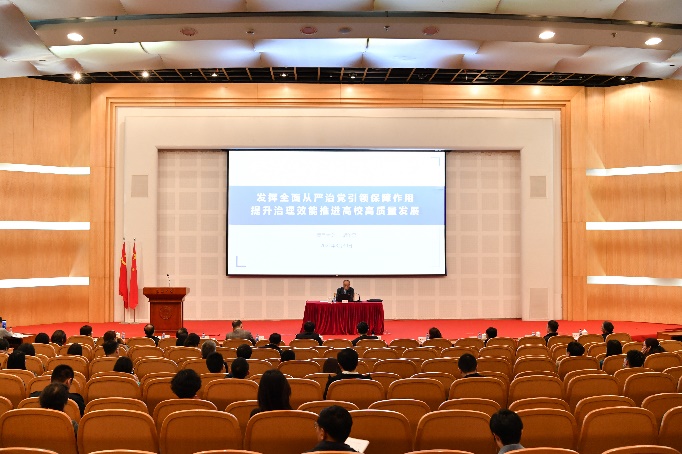 俞建勇在主持会议中指出,各级党组织和各单位、各部门要扎实做好本次会议精神的传达学习和贯彻落实,进一步统一思想认识,总结探索本单位全面从严治党工作的有效经验做法,不断推进全面从严治党向纵深发展、向基层延伸。深入对照全面从严治党“四责协同”要求,进一步强化管党治党责任,各级领导干部要发挥表率作用,把全面从严治党要求融入办学治校、教书育人全过程、各环节,充分发挥全面从严治党引领保障作用。