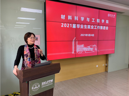 材料学院党委书记戴蓉对做好下一阶段就业工作进行了全面部署。戴蓉强调,全体教职工要从推动学院和学科发展的高度充分认识就业工作的重要性,将就业工作纳入人才培养的整体战略中进行思考和推动。近年来,学科评估、专业认证等都将人才培养质量作为重要指标,进一步强化了人才培养的中心地位,这是做好就业工作的根本遵循。戴蓉希望以此次推进会为契机,总结阶段性工作进展,查找工作中存在的突出问题,抢抓就业关键期和冲刺期,将党史学习教育成效转化为推动工作的动力,切实推动学生高质量就业。