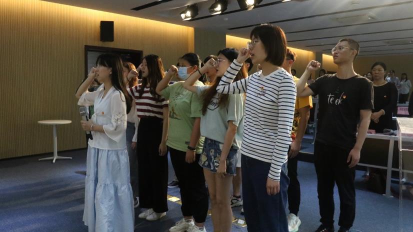 活动在激昂雄壮的《国际歌》中拉开帷幕,全体党员齐声合唱,回想自己曾经立下的庄严承诺。毕业生党员们无论作为莘莘学子,还是社会的建设者,都要传承追求真理、勇于开拓的革命精神,永葆共产党员的政治本色。
