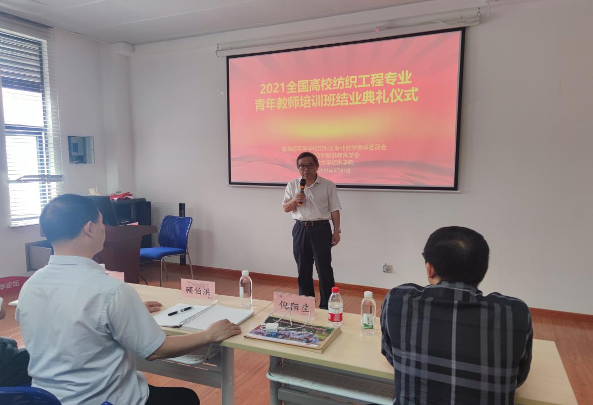 倪阳生在结业典礼上指出,本次培训对进一步加强纺织高校青年教师培养、切实提高青年教师教学水平具有重要意义。希望学员充分利用并珍惜青年教师培训班的平台,相互学习、加强交流、共同进步。他寄语青年教师忠诚、干净、担当,有大胸怀、大格局,共同为纺织人才培养和纺织行业高质量发展做出更大贡献。