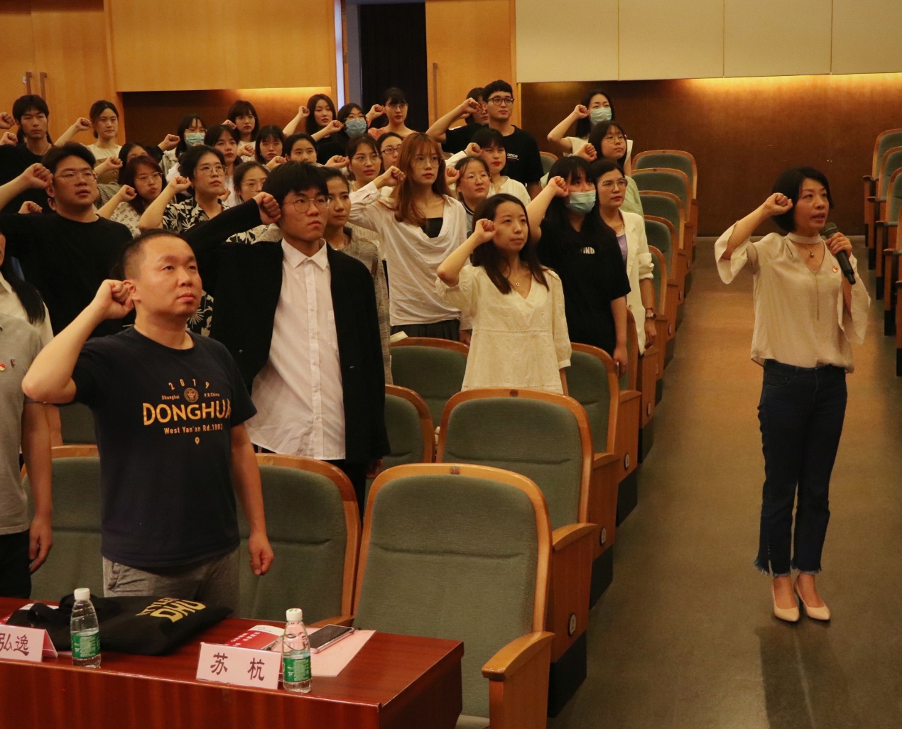 最后,学院党委副书记、纪委书记张云洁带领全体师生党员重温入党誓词,共同庆祝党员“第二生日”。