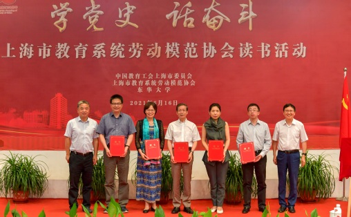 读书交流前,上海市教育工会领导为上海市教育系统劳模协会理事颁发了聘书,并为劳模代表送上《上海市教育系统劳模服务手册》。朱美芳劳模创新工作室进行了现场揭牌仪式。
