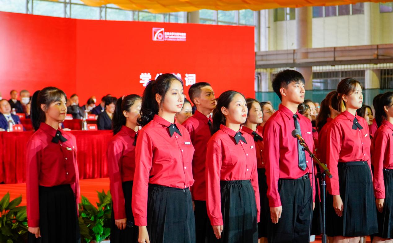 “我们将不惧风雨、勇挑重担,以实现中华民族伟大复兴为己任,让奋斗的青春在磨砺中绽放绚丽之花!”大会现场,还有一个特别的环节备受瞩目。70名东华学子身着“锦缎红”,带来慷慨激昂、青春洋溢的献词,他们用真诚质朴的语言向母校深情告白,抒发“东华有我,请母校放心,未来有我,请祖国放心,强国有我,请党放心”的铮铮誓言。
