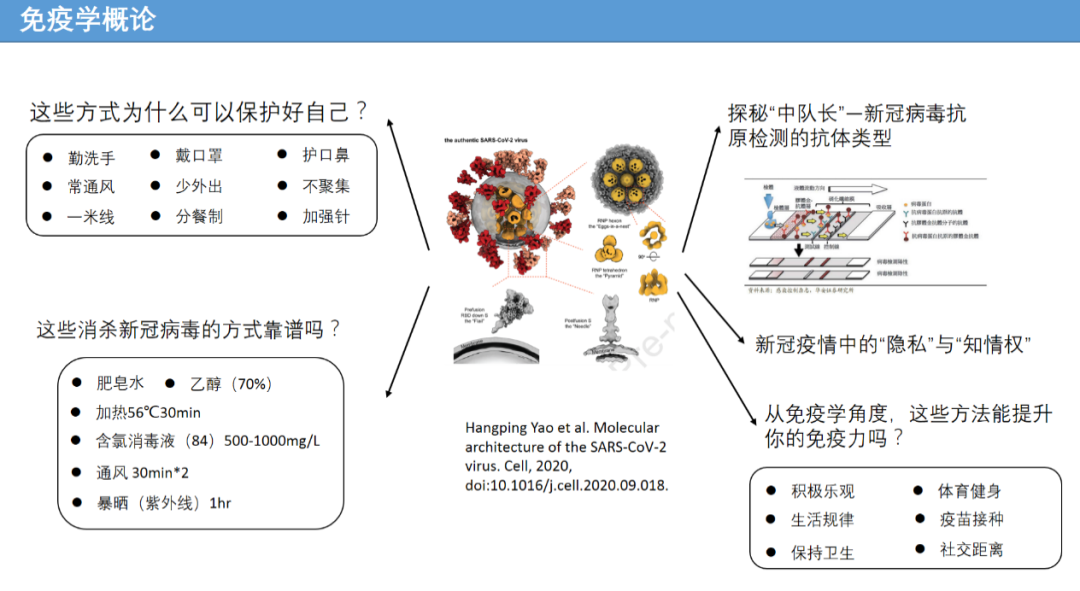 全球抗疫“中国贡献”不止于此。“这一科研成果体现了中国科学家的智慧,为全球抵抗新冠病毒,研发新冠药物与疫苗,作出了重要贡献。” 在“免疫学概论”课程中的“抗病毒感染免疫”这一章节中,化学化工与生物工程学院陈婷老师以中国科学家团队解析新冠病毒结构的工作为例。