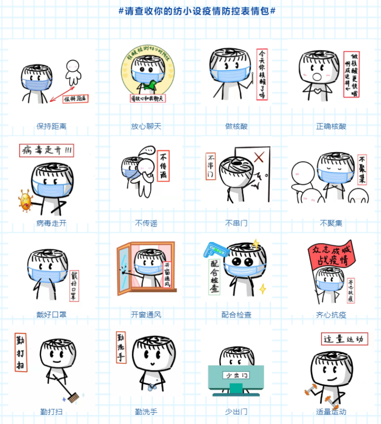 “我们的同学们一开始也没想到,一组小小的表情包,会有这么大影响力,现在才发现,能够以这种形式参与到校园防疫工作中,是一件很有意义的事情。表情包是简笔画,寥寥几笔,看似简单,背后是同学们团结一致的抗疫心。” ITD纺织品设计创新团队指导老师薛文良表示。