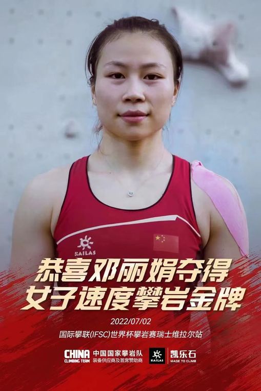 在刚刚结束的国际攀联世界杯岩赛瑞士维拉尔站女子速度赛比赛中,我校管理学院2021级本科生邓丽娟,以6.87秒的优异成绩夺得金牌,这也是我校首位攀岩世界冠军。