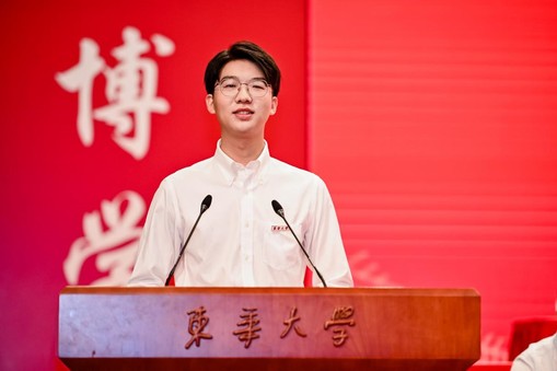 亲爱的同学们,以上四点希望,汇成一句,就是“崇德博学、砺志尚实”的东华校训。今天的典礼,意味着新的征程,“青春须早为,岂能长少年”,愿你们从老一辈东华人手中接好这一棒,走好东华这一程,鲜衣怒马,不负韶华,做东华的追光者,追光逐梦,以奋斗做笔,以汗水为墨,在东华谱写属于你们的青春之歌!谢谢大家!