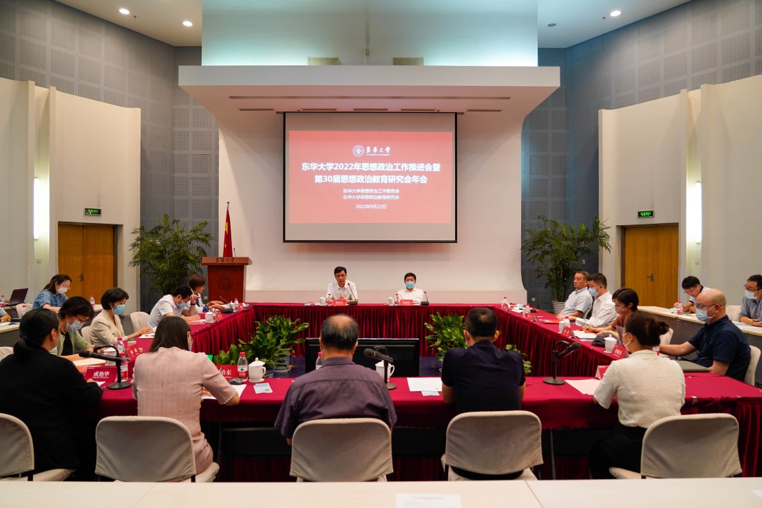 9月22日,学校在松江校区召开2022年思想政治工作推进会暨第30届思想政治教育研究会年会。党委书记刘承功出席会议并讲话,校长俞建勇宣读表彰名单,党委副书记刘淑慧,党委副书记、纪委书记王云骏,副校长邱高、陈革、李炜,党委常委朱英、任晓杰出席会议。会议由刘淑慧主持。