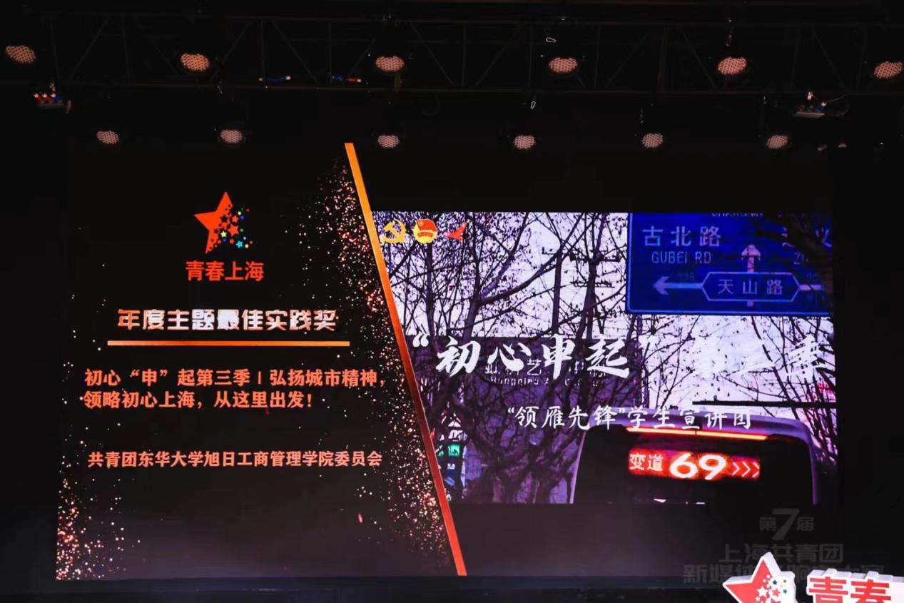 在本次评选中,旭日工商管理学院团委“DHU小管家”获得年度主题最佳实践、最佳视觉设计两个单项奖。在学院党委指导下,学院团委着力建设“领雁先锋”学生宣讲团,依托主题实践活动——“初心‘申’起第三季│弘扬城市精神,领略初心上海,从这里出发”,以上海城市精神为主脉络,从上海第一面“红旗”升起的地方启程,寻觅海派之根、漫步百年武康、感受地铁脉搏、体验时尚滨江,百代小楼忆国歌之声、市井小巷尝生活百味、居民邻里话街道故事,弘扬城市精神,领略初心上海。主题实践活动以微小镜头讲述上海故事,以“青年之声”畅想青春未来,以实际行动学习宣传贯彻党的二十大精神。