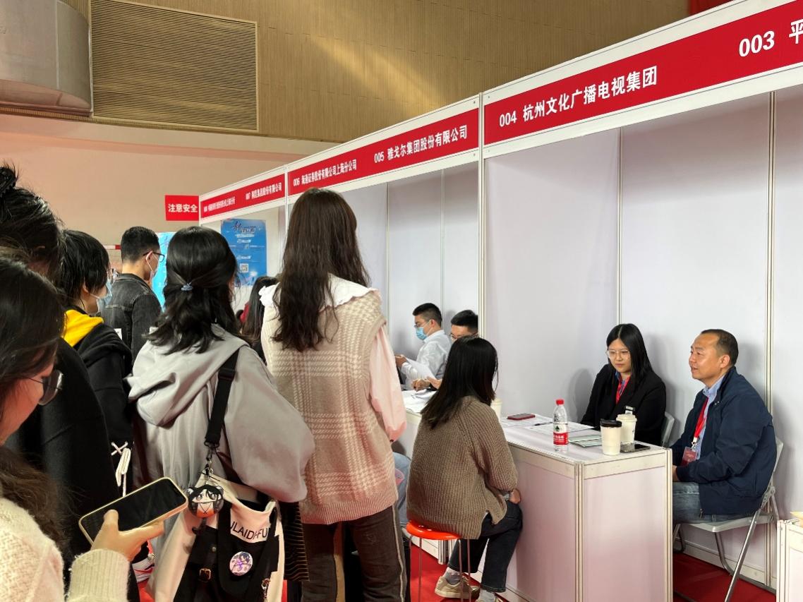 雅戈尔人力资源部胡经理表示,此次双选会学生热情很高,一下午收取了60多份优秀学生简历,此行收获满满。杭州文广集团展位前始终排着长队,吸引了许多学生。招聘会结束后相关学院与专业对口的企业还开展了小型座谈会,就今后如何更加深入做好人才培养输送工作开展探讨。