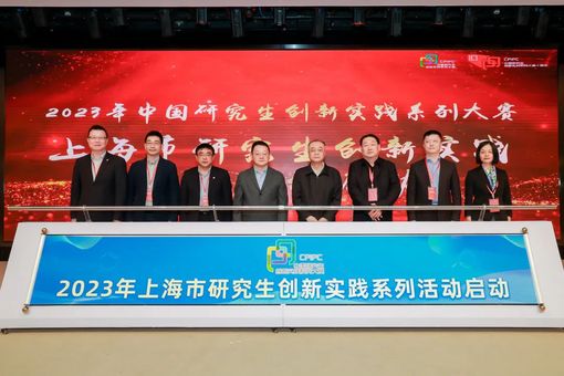 在上海市研究生创新实践系列活动启动环节,陈革与上海市兄弟高校的校领导一同启动2023上海研究生创新实践系列活动。