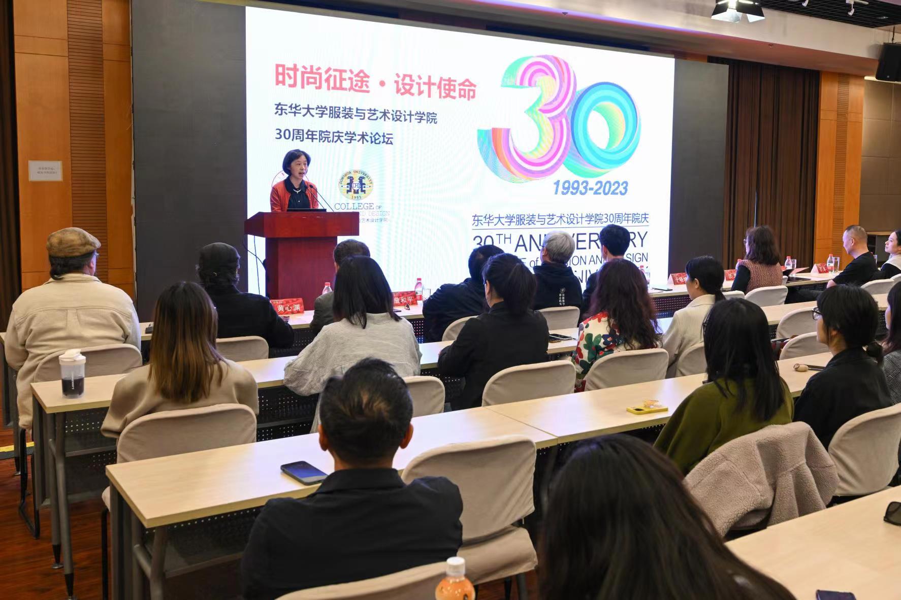 李炜在致辞中谈到,大学,要坚持学术为上。对于学院来讲,学术是学院发展之基。30年,承绵绵学脉而矢志不渝,服装与艺术设计学院一代代学人坚守民族文化艺术的根源思想,建构东方时尚重新生发的主体精神。从丝绸之路到国潮复兴,从民族服饰到智能穿戴,从时尚消费到生态责任,从非遗文化到产业前沿,围绕服装、艺术、时尚、设计等学术话语,服院人在时尚征程上孜孜以求,硕果累累。她强调,学院院庆是推进学术发展的重要契机,希望服院学人站在新的起点,在新的征程上,不断推进学科体系、学术体系、话语体系建设,为推进学校以学科建设为统领的高质量发展贡献新的更大的力量。